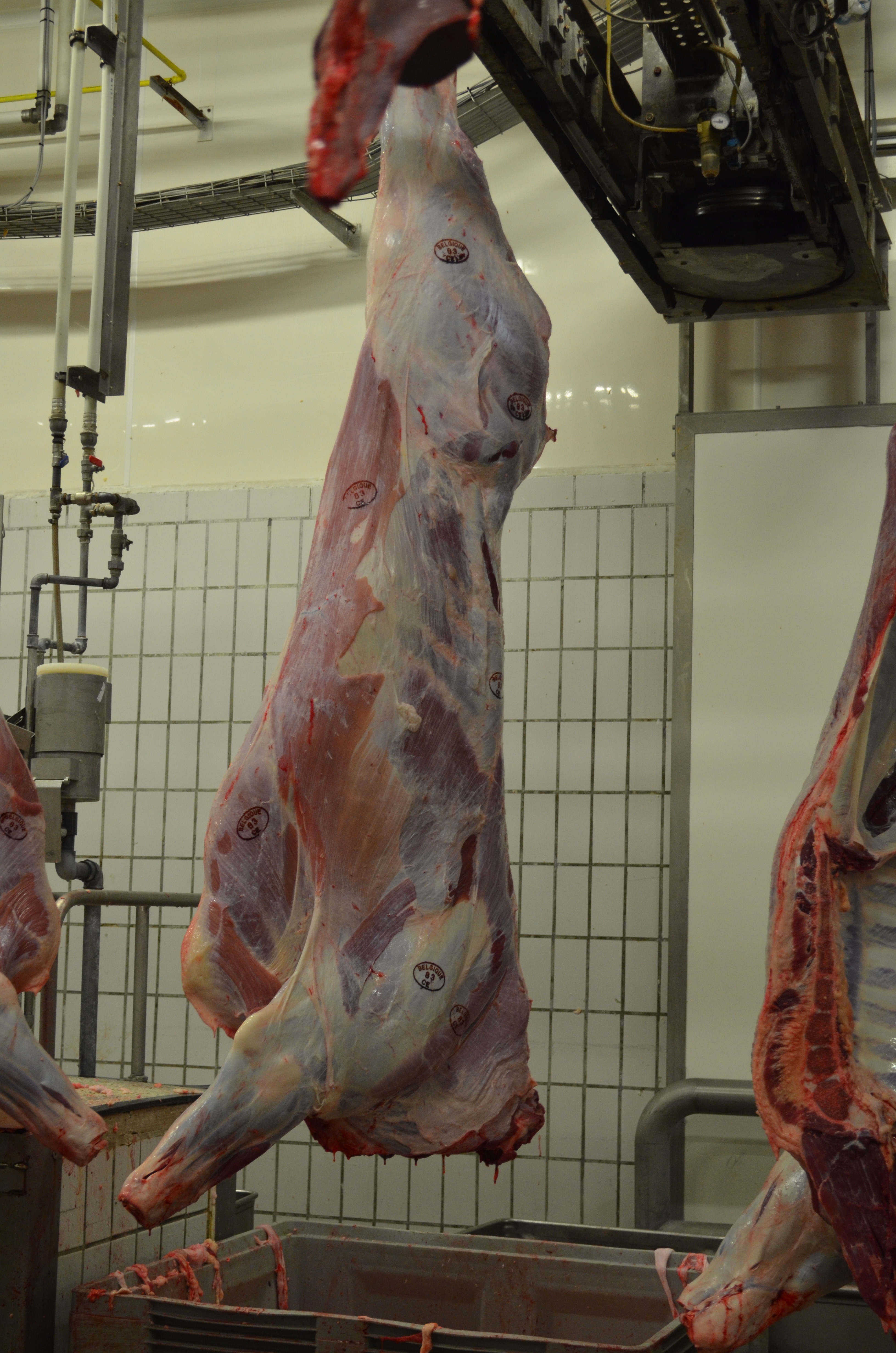 Nous avons été reçus par Monsieur Jolet, gérant de l’abattoir intercommunal. La visite a commencé par la zone propre, c’est-à-dire la découpe des carcasses. Etant donné le peu de bêtes reçues ce jour, nous étions trop tard pour les abattages (en zone sale). Nous avons néanmoins pu observer comment se déroule le traitement des carcasses, leur stockage et avons pu visiter la firme prenant en charge le travail et l’emballage de la viande (De Roy).