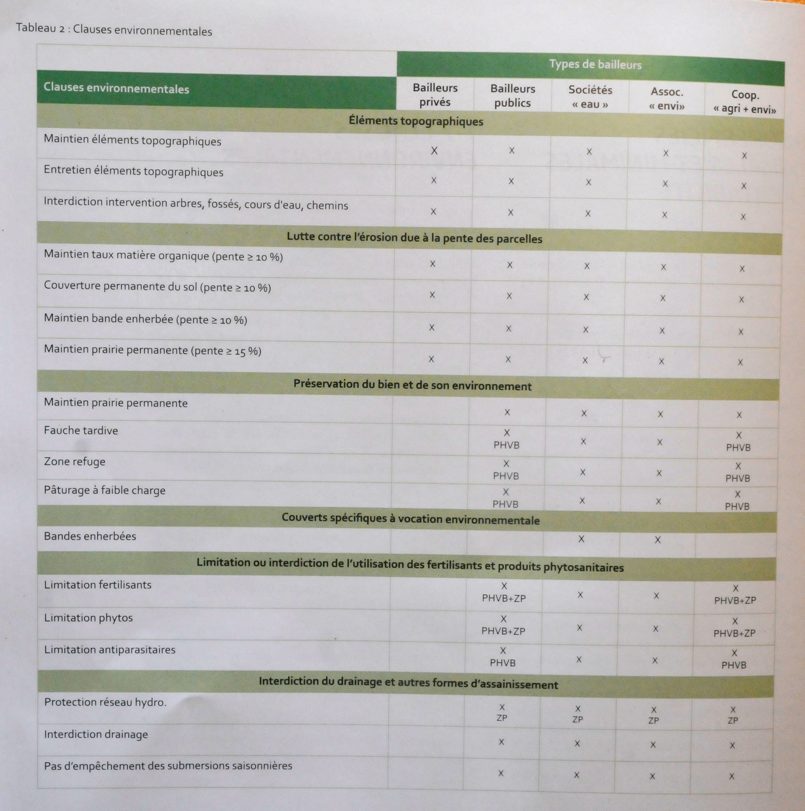 Les pouvoirs publics, certaines associations environnementales, certaines coopératives agricoles et sociétés de droit public chargées de la gestion de l’eau peuvent insérer des clauses environnementales spécifiques dans les baux.